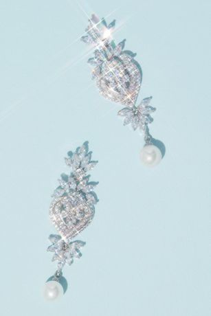 Opulent and elegant, these radiant crystal earrings are covered with marquise-cut stones that adorn a pave crystal crested heart detail. A solitaire pearl drop completes the dramatic pair.