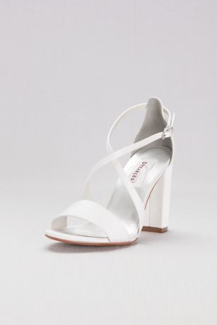 These chunky-heeled dyeable matte satin sandals captivate with crisscross straps.