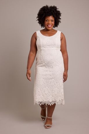 Get ready to swoon! This formfitting midi dress features a flared crochet-lace skirt with an intricate scalloped hem. The scoop neckline and buttoned V-back are as classic as can be.