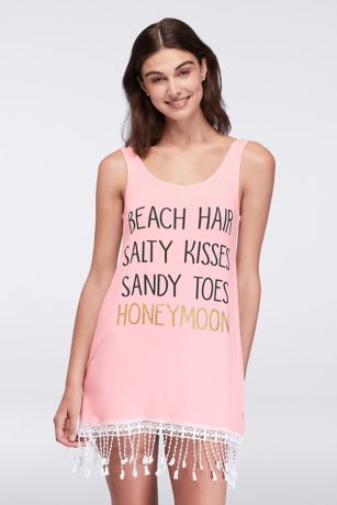 Beach hair, salty kisses, and sandy toes? Sounds like the perfect honeymoon. Enter, the perfect honeymoon cover up, made of crochet-fringed jersey.