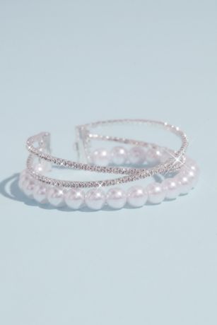Crossed Rhinestone and Pearl Stacked Cuff Bracelet