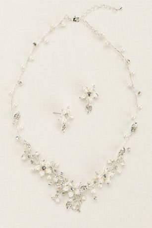 Crystal and Pearl Floral Necklace and Earring Set
