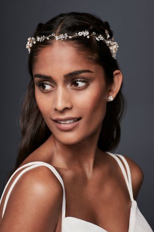 Romantic and ethereal, this crown of tiny rhinestone blossoms can be tied with its long ribbons, or, remove the ribbons and weave the decorative buds through the hair.