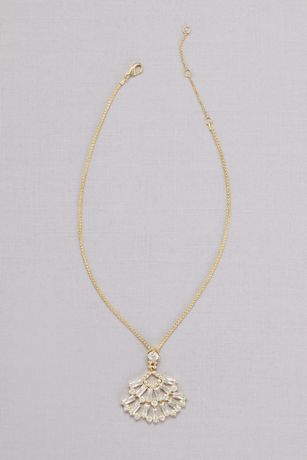 Two fan-shaped rows of crystal baguettes sparkle from the pendant of this stunning necklace.