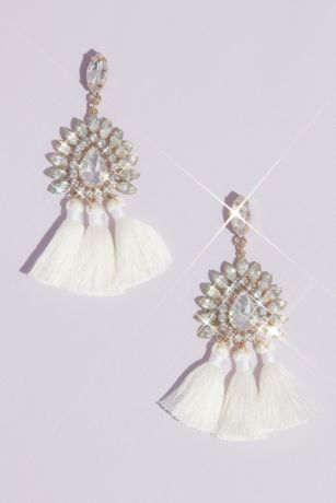 Sparkles on the top, fringe on the bottom: Make a statement with these chandelier tassel earrings, topped with a crystal mix.