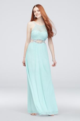 Crystal Cutouts and Lace High-Neck Dress
