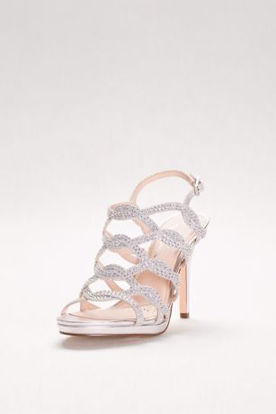 Studded with crystals, intricately twisted straps make these platform heels a dance floor focal point.