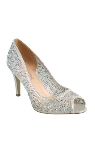 This peep-toe pump takes a classic silhouette and kicks it up a notch with sheer mesh and dazzling crystals.