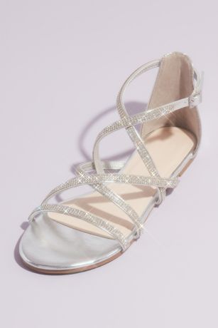 It's your time to shine in these metallic flat sandals embellished with three rows of tonal pave crystals along the crossing straps.