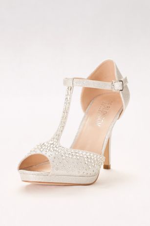 Crystal-Embellished Peep-Toe T-Strap Heels
