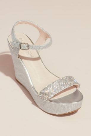 Add height and glam to your special occasion look with these eye-catching platform wedges, embellished with dazzling rows of pave crystals along the toe strap and comfy cushioning at the ball of the foot. Plus, they're the perfect pair to show off a pretty pedicure!
