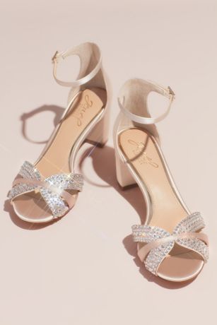 Crystal Embellished Strap Satin Block Heel Sandals