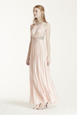 - Halter neckline and waistline are adorned with stunning crystal embellishments and beading.