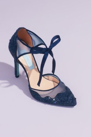 Crystal Embellished Tie Pumps with Illusion Mesh
