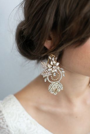 Crystal-encrusted leaf charms, freshwater pearls, and bursts of navette crystals grace these stunning earrings.