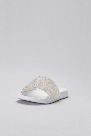 Rows and rows of tiny crystals top this pair of comfy slides.