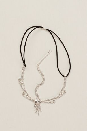 - Rhinestones line the chain and create dangling designs on the forehead.