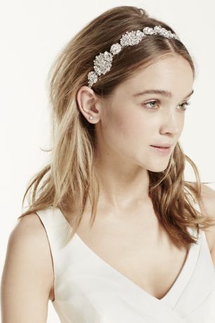 Make a dramatic statement with this heavily encrusted crystal head wrap on your special day!