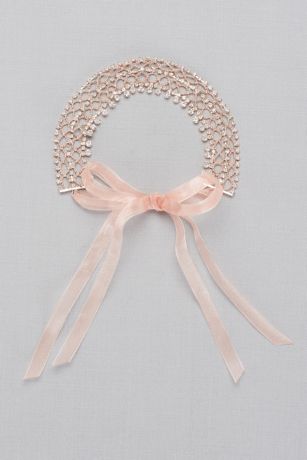 A delicate filigree framework holds tiny crystals in this Roaring 20s-inspired headband. Organza ribbon ties complete the look.