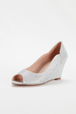 - Mid-heel wedge comprised of metallic glitter while tiny crystal rhinestones cover the vamp!