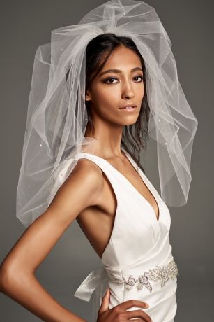 White by Vera Wang's beautiful mid-length tulle veil is detailed with hand-placed scattered crystals that complement her gowns perfectly.
