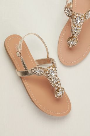 These sandals are adorned with crystals and finished with an adjustable metallic slingback strap.