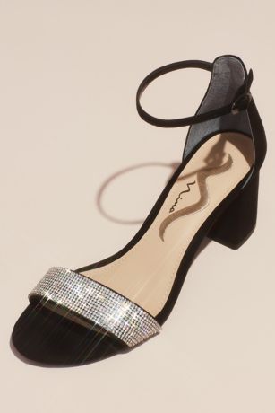 Crystal Strap Suede Block Heel Sandals