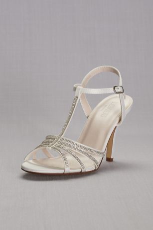 Add some sparkle to your step with these T-strap crystal-embellished high heel sandals.
