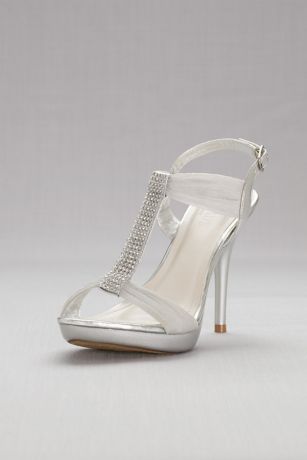 Gathered mesh straps and sparkling crystal T-straps add a fashion-forward twist to these gorgeous high-heel sandals.