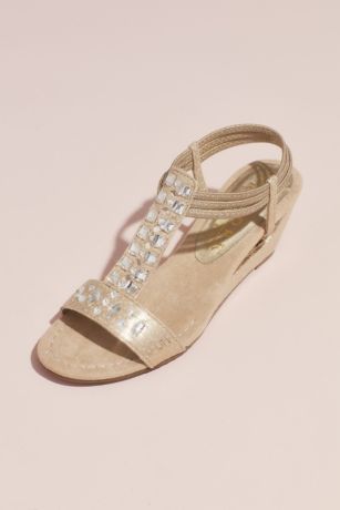 Crystal T-Strap Wedge Sandals with Heel Cutout