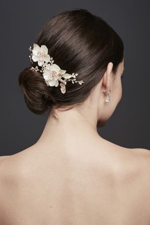 Finish off your bridal look with this elegant hair clip, featuring two blush-hued blooms with crystal centers.