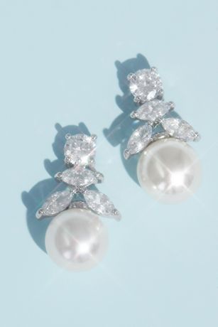 Cubic Zirconia and Pearl Drop Earrings