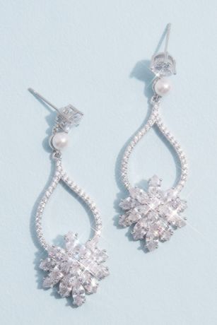 Cubic Zirconia and Pearl Drop Earrings with Bursts