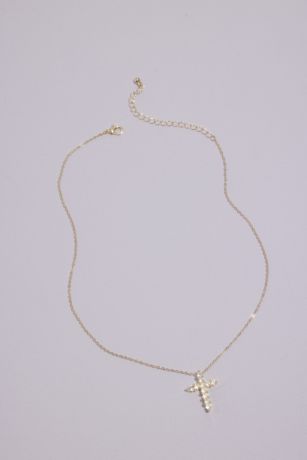 A simple cross pendant twinkles with cubic zirconia gems.