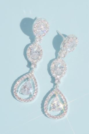 Cubic Zirconia Halo Triple Teardrop Earrings