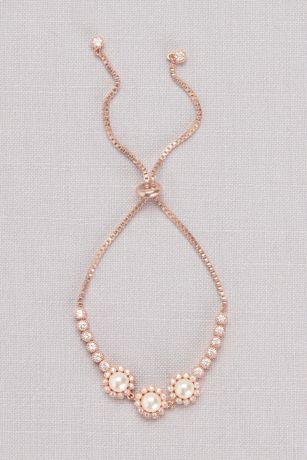 Cubic Zirconia Pearl Blossom Pull-Back Bracelet