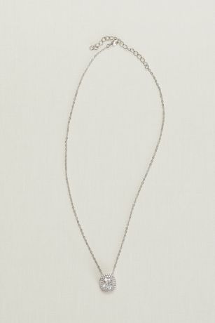 Cubic Zirconia Solitaire Pave Halo Necklace