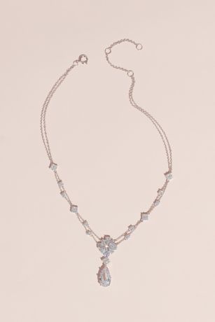 Cubic Zirconia Strand Necklace with Tear Pendant