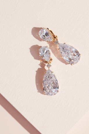 Cubic Zirconia Teardrop Dangle Clip-On Earrings