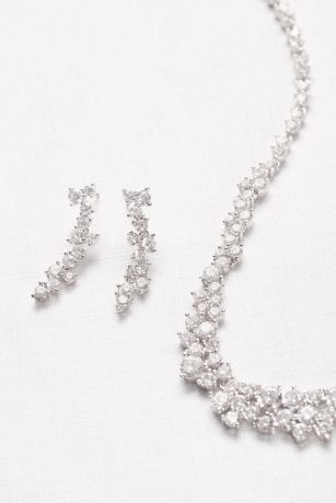 The connected cubic zirconia clusters of this collar necklace and earring set sparkle like cresting waves.