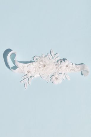 A pretty piece to slip on before your wedding, this garter features a cutout lace applique with a delicate crystal accent in the center.
