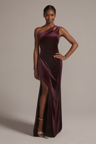 Cutout One-Shoulder Velvet Gown with Skirt Slit