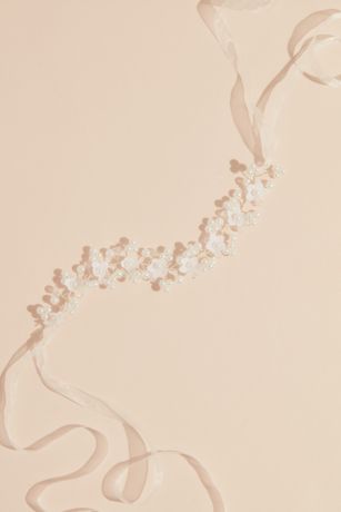 Darling daisies and petite pearl clusters adorn this flower girl headband, while an organza ribbon ensures the perfect fit.