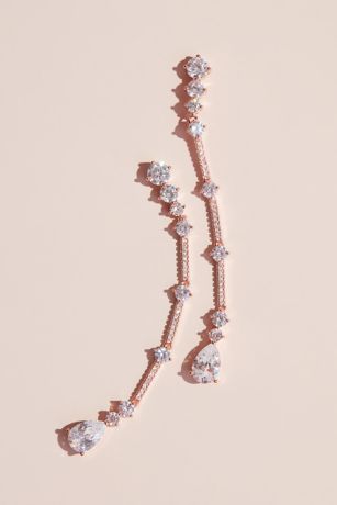 Dangling Cubic Zirconia Bar and Pear Earrings