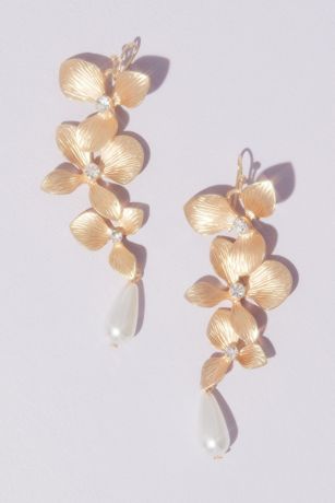 Accent an updo or sleek hairstyle with these breathtaking gilded floral drop earrings.