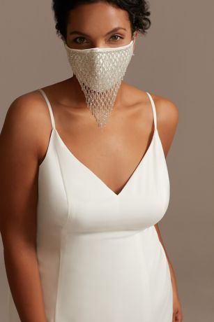 Add some sparkle to your face mask with this gorgeous rhinestone fringe face mask cover. An adjustable band provides a secure fit.