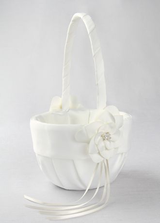 David's Bridal Exclusive ivory flower girl basket features a fun and charming delicate satin flower with layers of petals and beading in the center.