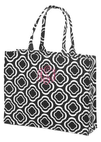 Your bridesmaid will be thrilled at all the compliments she receives while carrying our Personalized Black and White Canvas Tote. Both stylish and useful, this attention-grabbing tote features a beautiful honeycomb-style print that is far from boring. Its coated interior is easily cleaned and provides ample room for everything she needs to carry while out and about for the day. Featuring a flat base to sit comfortably on any surface, and handles that can be carried over the shoulder or by hand, this versatile tote is a wonderful choice for your bridesmaid gift.
