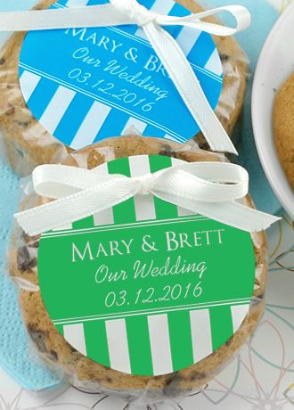 Personalized round adhesive labels add a fun and unique flair to your special day. With distinctive designs to match every event and style theme or season; saying thank you just keeps getting sweeter and sweeter! Personalized round adhesive labels compliment all types of favor boxes and tins; they even add a personal touch to gift bags and envelopes. This collection has many beautiful designs in Davids Bridal Exclusive colors to help you create a beautiful label that compliments your wedding theme or decor. Choose your names, a favorite quote, or your initials to personalize your label. Your guests will notice and appreciate these eye-catching labels. Our labels have a beautiful high gloss finish that converts any favor into a unique inexpensive favor that everyone will enjoy!