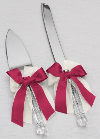 Exclusive for Davids Bridal! Customize this elegant cake knife and server wth organza ribbon layerd into a bow with your choice of David's Exclusive satin ribbon.